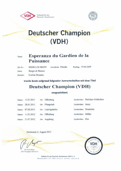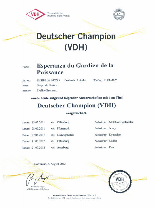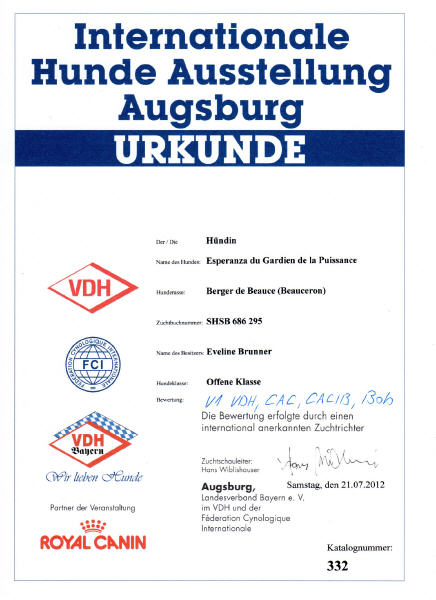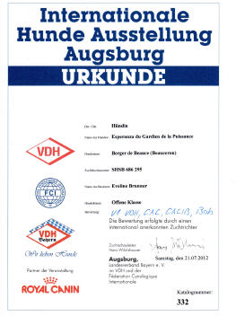 V1, Anw. Dt. CH, CAC, CACIB, BOB und ab heute Deutscher Schönheitschampion VDH